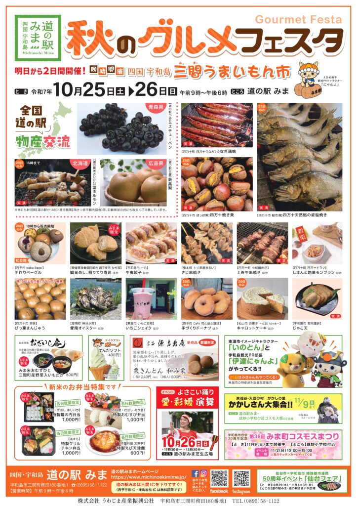 10月25日(土)、26日(日)の2日間【道の駅みま 秋のグルメフェスタ】を開催いたします。